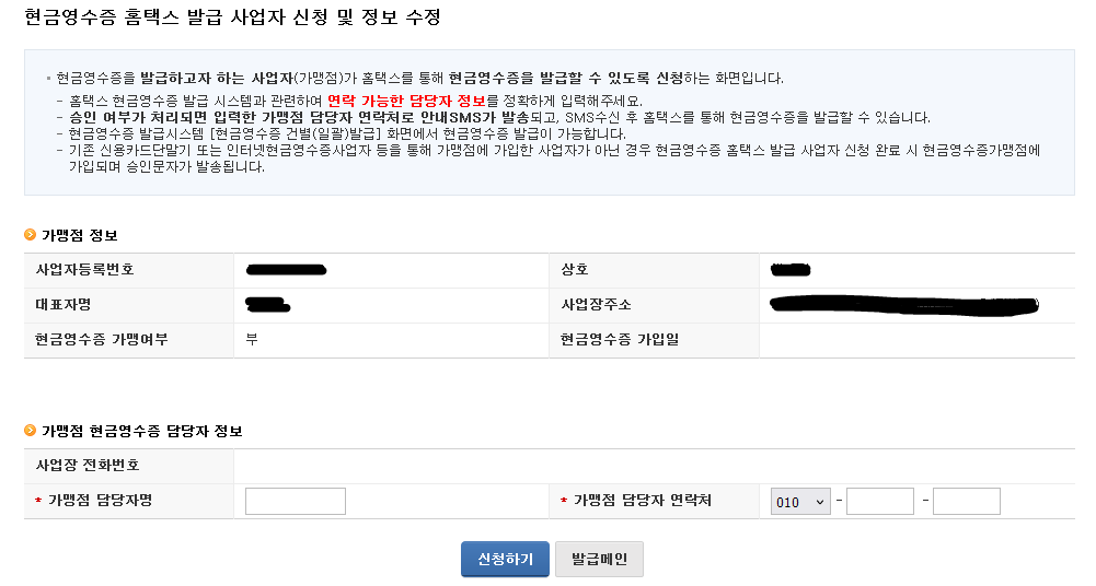 국세청 홈택스를 통한 현금영수증 가맹점 가입방법